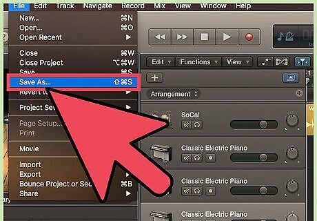 Save your project. Periodically as you are working on your project, you must continue to save so you do not lose any of your work. Navigate to the "File" option at the top bar and select "Save As" or "Save", and give your project a name.