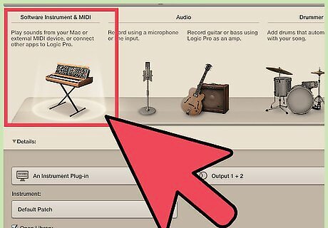 Record software instruments. With your MIDI keyboard/synthesizer, you can emulate hundreds of different instruments through Logic's library. From the new track window, click "Software Instrument". Select your instrument and make sure your MIDI workstation is connected and ready. Press "R" your keyboard to record.