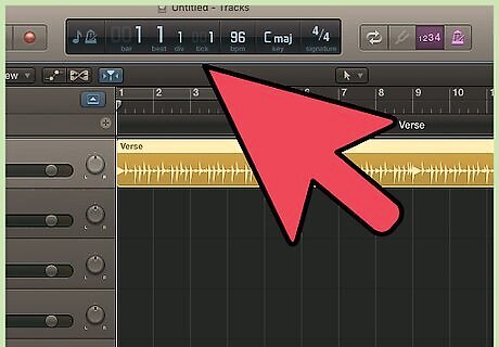 Use Quantization. To correct any discrepancies in timing when recording software instruments, you can quantize that track to a certain time signature, based on its frequency in the recording. To do so, first go into the inspector by clicking "View" at the top bar, and then "Show Inspector". Select your track, then navigate to the "Quantize" option and select your particular timing. Those notes will automatically align themselves according to the timing you select.
