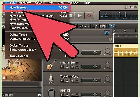 Create a new track. To create a new track, navigate your mouse to the "Track" option in the top bar and select "New Track". Select the first track you want to add in the arrange window.
