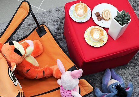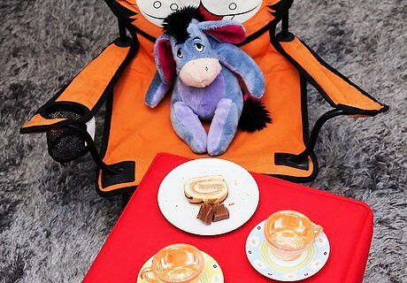 Set up the table. Use a little table if you have one. If you don't have one, make one from a box turned upside down, with a cloth thrown over it to look like a tablecloth.