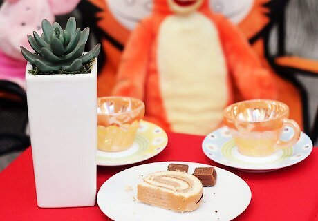 Decorate the area for the tea party. Maybe add a balloon, some colorful streamers and a vase of flowers.