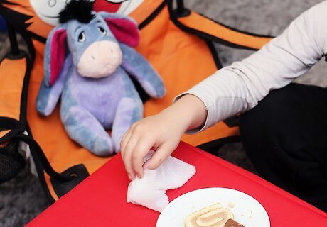 Clean up afterwards. This is an important part of your child learning to put things away and to keep things clean. If real food was consumed, show your child how to clear away crumbs, clean the plates and vacuum (if needed). Even if everything used was not real, the toy items need to be packed away neatly.