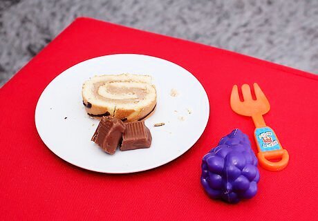 Decide on food for the tea party. Choose food from your doll or toy miniature food collection, if you have such items. Otherwise, you could cut out magazine pictures of food or print some off––ask your parents for help.