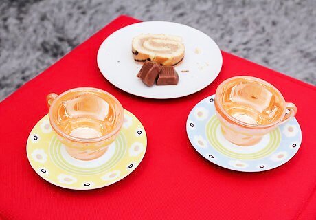 Set the table. Put out plastic/toy teacups, a tea set and any other things you want for the tea party. You can make plates from clay or play dough if you don't have any. Or, ask a parent for plastic plates or disposable plates.