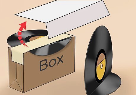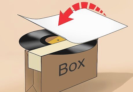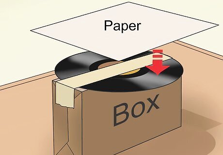 Secure the record with tape and cover it with a sheet of paper. Secure the record to the box with a few pieces of tape to keep it from sliding around. Cover the record with a piece of paper; make sure that it is long enough to cover the record.