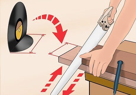 Cut a block of wood to the same size as the record's folded edge. Use a ruler to measure the length and width of the side of the record you folded. Measure along the folded edge first, then measure from the folded edge to the side of the record. Cut a piece of wood to match these measurements.