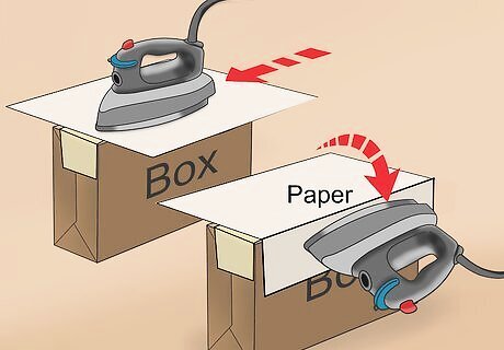 Iron the record starting from the middle, then do the sides. Press the iron against the middle of the record and move it around. Work your way towards the edges of the box. Once you feel the record turn malleable, fold the sides down against the sides of the box and iron them as well. Move the paper around as needed. You should only touch the paper with the iron and never the bare record. Keep the iron moving and don't leave it in 1 place for too long.