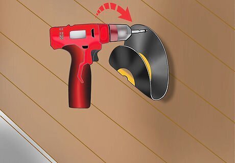 Secure the record to the wall with a screw. Place the longer side of the record against a wall. If the center hole of the record is still visible, you can insert a screw through that hole. Alternatively, drill a screw through the top of the record and into the wall. Place the screw about 1 to 2 inches (2.5 to 5.1 cm) from the top of the record. Alternatively, you can use double-sided foam mounting tape.