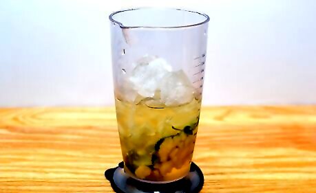 Add enough ice cubes enough to fill the blender about 1/2 full.