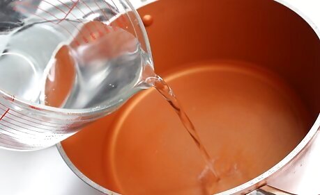 Fill your pot no more than half-full with water. The amount of water you can distill at one time will depend on how big your pot is. Generally, you won't be able to fill the pot more than half full and still have room for the cup. The water level should not be high enough to reach the bottom of the cup.