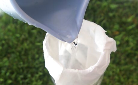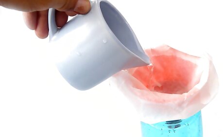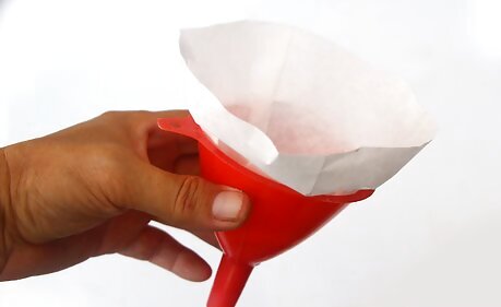 Pour water through a cloth or coffee filter. If your water is cloudy, simply pouring it through a piece of cloth or a coffee filter will remove most of the sediment. This method also removes dirt and debris from water found in a natural source, such as a stream or river. Filtering water through cloth is only the first step in the filtration process. While it can make the water less cloudy, it won't effectively clean your water or make it safe for drinking.