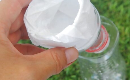 Build a bio-filter. Cut your soft drink bottles in half, and nestle the top half upside down inside the bottom half. Place a napkin or paper towel into the neck of the top bottle, then add your filter materials. Place sand at the bottom of the filter on top of the paper towel, followed by a layer of charcoal. Top your filter off with a layer of gravel. Gravel and sand remove contaminants in the water, while the charcoal removes pesticides and chemicals as well as improving the flavor.