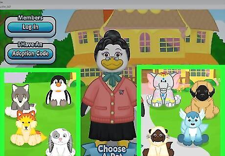 Choose a free pet from those provided. They usually consist of a different variety of animals. Keep in mind that this pet doesn't come with a plush counterpart. If you have a pet adoption code, you can choose to skip adopting a free pet or adopt a free pet later.