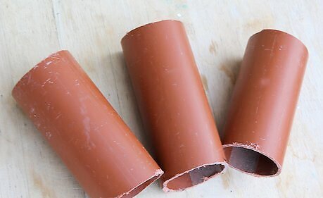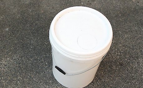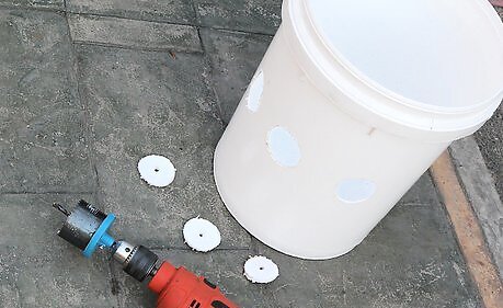 Drill three large holes approximately 2” apart along the top 2/3 portion of the gallon bucket. You want a snug fit for your PVC pipe.