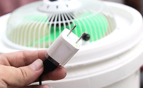 Assemble A/C unit. You will want to either have a power source nearby or use a battery-operated fan. If your fan has a usb plug in a power bank or batteries.Make an A_C Unit for $15 Step 11Bullet1.jpg Place the frozen gallon of water inside the bucket. Or as an option you could fill it with cubed ice and add salt for it last longer. Make an A_C Unit for $15 Step 11Bullet2.jpg Replace the gallon lid so you have a tight fit.Make an A_C Unit for $15 Step 11Bullet3.jpg Place the fan mouth on top of the hole you cut and make sure the fan covers the entire hole (it should be a perfect fit).Make an A_C Unit for $15 Step 11Bullet4.jpg