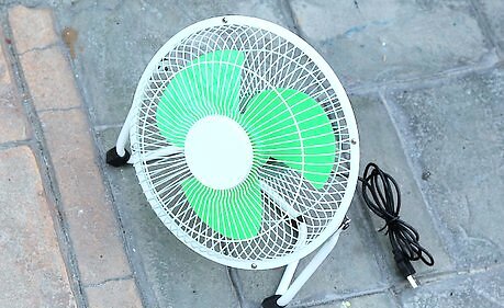 Obtain a desk fan. Find something that can run using batteries and being plug in. Remove parts you won't need from the fan like the stand or base.