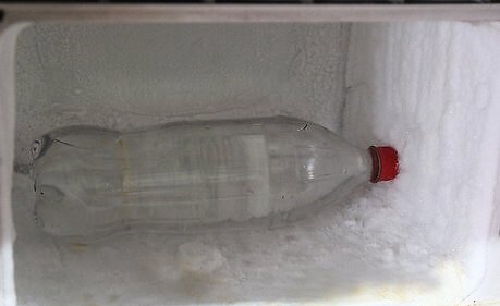 Fill the plastic gallon jug with water and place in freezer. A good idea would be to store this jug during storm season or summertime to keep on hand during emergencies.