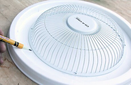 Trace around the mouth of the fan with your pencil onto the lid. You want a close measurement, as you will be placing the fan on top of the lid. Center your measurement so they fan distributes air inside the bucket evenly.Make an A_C Unit for $15 Step 10Bullet1.jpg Cut out tracing using your box cutter or craft knife. Make an A_C Unit for $15 Step 10Bullet2.jpg