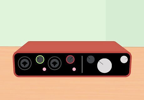 Invest in an interface. An audio interface allows you to plug in an instrument like a guitar or a microphone, and record onto the computer without a delay in timing. Research an interface that will be the most compatible with your computer and recording needs. Interfaces can have one or multiple input jacks for simultaneous recording. Some larger modules may have up to 16 input jacks and a built in mixer. Interfaces range greatly in price, so consider your specific needs before committing. Most interfaces come with a combination of XLR (standard for microphones) and ¼” jacks (standard for guitars and keyboards). Several interfaces also come with recording software or an extended trial of software. Check out all the features of the prospective interface before purchasing it.