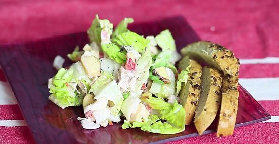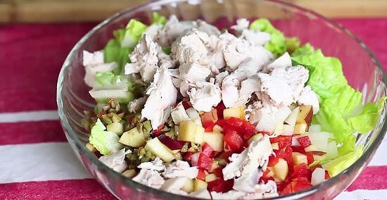 Combine the chicken, vegetables, and chopped apple in a large bowl. Set aside.