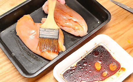 Combine 1 tablespoon sesame oil and ⁄2 tablespoon (7.4 ml) soy sauce, brushing over chicken breasts completely.
