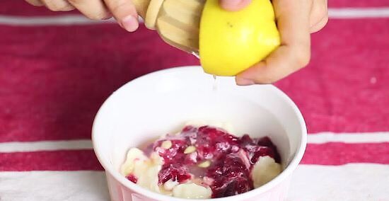 Mix together the mayonnaise, lemon juice, and berry preserves in a separate bowl. Add salt and pepper to taste, and then drizzle the dressing over the salad.