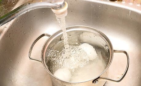 Once finished, set the eggs under running cool water. Wait for the eggs to cool down in their shells.