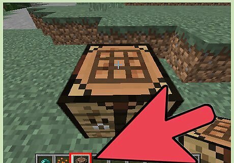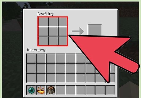 Open the crafting table to access the crafting menu. These instructions will vary depending on your gaming system. After you open the crafting menu, the 3x3 crafting grid will display on-screen. Minecraft PC: Right-click on the crafting table to access the crafting menu. Minecraft PE: Tap on the crafting table to access the crafting menu. PS3 / PS4: Press the square button on your controller to access the crafting menu. Xbox 360 / Xbox One: Press the “X” button on your controller to access the crafting menu.