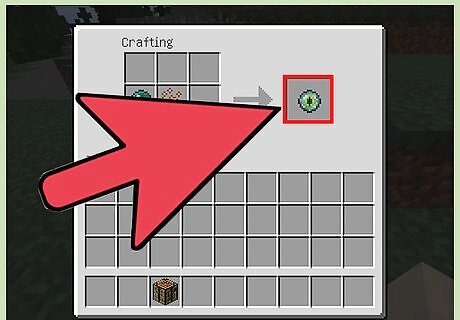 Verify that the Eye of Ender appears in the single box on the far right. The Eye of Ender is a green orb that resembles an eyeball, and appears after you’ve placed the Ender Pearl and Blaze Powder into their respective positions in the grid.