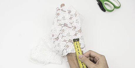 Cut your material. Once you have chosen your material, it will be necessary to cut it. Materials like jersey will need to be doubled over in order to form a tube. If you choose to use a fabric like stretch lace, however, doubling will be unnecessary. For jersey, velvet and other full fabrics, you will want to cut the material in a long rectangular shape, in order to be able to eventually form a tube. First, cut the length (using the head measurement taken earlier) so that there is a quarter to half-inch seam allowance on either end. Cut the width so that it is twice the size you decided on, as well as another quarter to half-inch extra seam allowance. These seam allowances should be on all sides. Use appropriate tools. Using sewing shears is very important when you cut the fabric, as dull blades can lead to an uneven, unattractive edge.