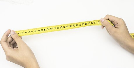 Measure the head. Before you can make the headband you will need to know the appropriate size. This can be done by measuring the individual or by using generalized measurements based on age or weight. If measuring in person, you will want to measure the circumference of the head, in roughly the same place that you intend the headband to go. This will usually be just above the ears. Methods. Babies are fragile and do not like to hold still, so taking their measurements can be challenging. If you have a cloth measuring tape, use this. Avoid metal measuring tapes as they are inaccurate and may scratch the baby. If a cloth measuring tape is unavailable, measure the head using a length of soft string and then comparing the string to another measurement tool. If the baby is not located nearby or if the baby has not yet been born, you may have to rely on generalized measurements. These can be found readily on the internet. Try searching for standard sizes on sewing and craft websites and message boards. It may also be possible to find another child of a similar size or age and measure their head.