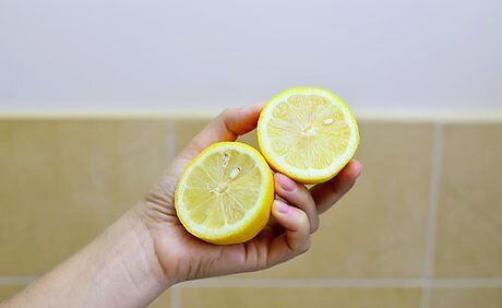 Cut a lime in half and squeeze the juice from both halves into the empty glass.
