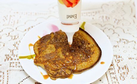 Serve with your favorite toppings. When all the pancakes are ready, portion them out onto individual plates and serve with any combination of popular toppings, which can include: Butter Maple syrup or honey Jam Peanut butter Fresh fruit, such as bananas, blueberries, and strawberries Whipped cream