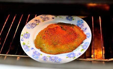 Keep cooked pancakes warm. Because you're cooking the pancakes two at a time, you don’t want the cooked ones getting cold while you wait for the rest. There are a couple of ways you can keep cooked pancakes warm, including: Keep them in a 225 F (107 C) oven. Store the pancakes in a single layer on a wire rack to keep them crispy. Wrap them in foil and wrap the foil in a towel. Be warned that the pancakes may lose some of their crispiness this way. Keep them in the warming drawer if your oven has one.