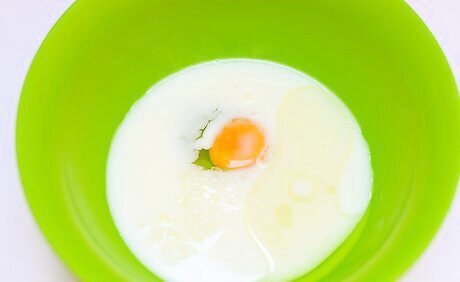 Combine the wet ingredients. Crack the egg into a large mixing bowl. Beat the egg with a whisk for a minute to scramble it. Add the buttermilk and vanilla, and whisk all the ingredients together to combine them. Cracking the egg first is a good idea because it gives you a chance to remove any pieces of shell that may fall in.