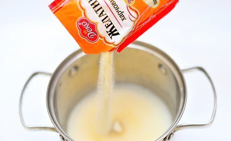Add the water and gelatin to a saucepan. Pour 1 cup (237 ml) of water into a medium saucepan. Sprinkle 2 (1 oz./28 g) envelopes of unflavored gelatin over the water and let the mixture sit for 2 to 3 minutes.
