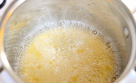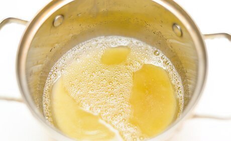 Lower the heat to bring the mixture to a simmer until the sugar dissolves. After you’ve blended the sugar into the gelatin mixture, reduce the heat to medium-low. Allow it to simmer until the sugar dissolves, which should take about 5 to 7 minutes. While the mixture is heating, stir it occasionally to help the sugar dissolve.