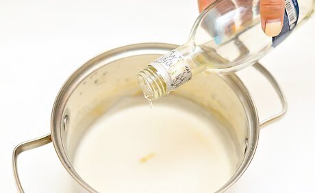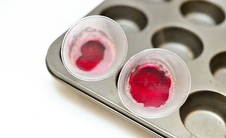 Stir in the vodka and set aside. Once the gelatin is dissolved, remove the pan from the heat. Add 1 cup (237 ml) of cold vanilla vodka and mix it in well. Set the pan aside for the moment. You can substitute plain vodka or even more peppermint schnapps for the vanilla vodka if you prefer. Make sure the spot where you leave the pan isn’t too cold. You don’t want the mixture to set up yet.