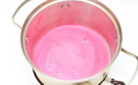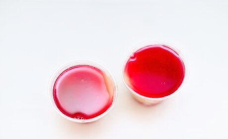 Stir in the red food coloring and peppermint schnapps and set aside. Once the sugar dissolves, remove the pan from the heat. Add 4 to 5 drops of red food coloring to the mixture and stir well to tint it red. Next, pour 1 cup (237 ml) of cold peppermint schnapps into the pan and mix it in. Set the mixture aside for the moment. Don’t place the pan with the red layer mixture in a cold spot because you don’t want it to set up. Instead, keep it beside the stove so it will stay at room temperature.