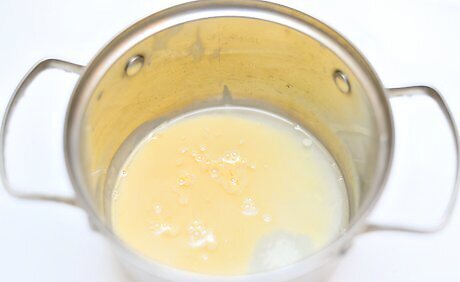 Add the gelatin to the condensed milk mixture and let it sit. When the water and condensed milk are mixed, sprinkle 2 (1 oz./28 g) envelopes of unflavored gelatin over the mixture. Allow it to sit for 2 to 3 minutes so the gelatin has time to soak.