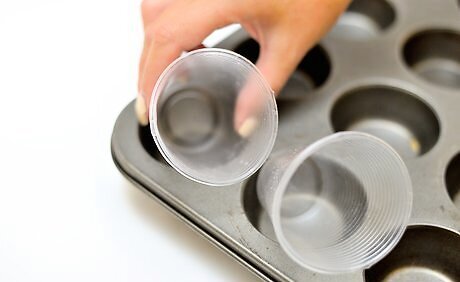 Set shot glasses at an angle in a muffin pan. For the jello shots, you’ll need 12 clear shot glasses. Place the glasses in a muffin pan so they’re angled slightly. That will allow you to create slanted stripes for the candy cane jello shots. It’s best to use tall, thin shot classes for the most impressive looking jello shots.