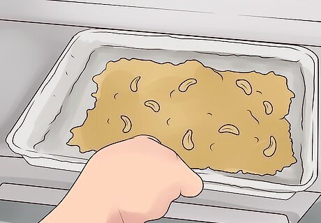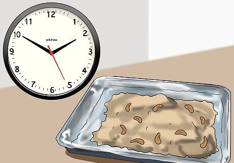 Dehydrate or dry the cashews. Spread the cashews in a single layer on a cookie sheet or on a dehydrator rack. Heat your oven or dehydrator to 150 °F (66 °C). Periodically check on the cashews and toss them to ensure they dry on all sides. Monitor them to ensure that they do not burn. Dry the cashews until they are slightly crispy, or about 12-24 hours.