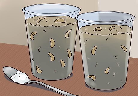 Soak the cashews in water. If you purchased raw nuts, you may decide to soak and dehydrate them first before processing them into cashew butter. To soak nuts, place 4 cups of nuts into a glass or ceramic bowl. Fill the bowl with water so the nuts are completely submerged, and add 1-2 tablespoons of unrefined salt. Cover the bowl and let it stand for about 2-3 hours. Raw nuts contain high levels of phytic acid and enzyme inhibitors, which can cause irritation and digestive difficulty, and can inhibit the absorption of some of the nutrients contained in nuts. Soaking nuts can neutralize the acid and enzyme inhibitors, maximizing the health potential of nuts.