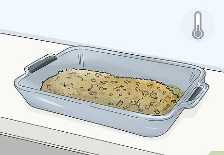 Let the mixture cool down for at least 1 hour. Take the casserole dish out of the oven. Set it on a safe place on the counter and wait at least 1 hour for the hot oil to cool down. You can make this in the evening and let the mixture sit in the oven overnight after you turn it off. This will give the catnip a bit more time to infuse into the oil and it will be cool in the morning.