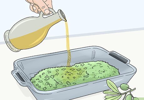 Cover the catnip in olive oil. Open up a bottle of any type of olive oil and pour it into the pan on top of the catnip. Stop pouring as soon as the catnip is just barely submerged in oil. Olive oil is a good option because it is very stable, but you could also use another natural oil like soy oil, avocado oil, or coconut oil.