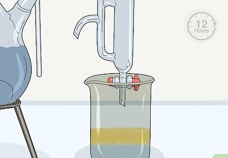 Leave the water and oil to settle for 12 hours. Let the liquid cool in the collection vessel for at least 12 hours. This will also give the water and oil more time to separate. The liquid will look less murky after 12 hours and you should be able to see the oil at the top of the distilled water.