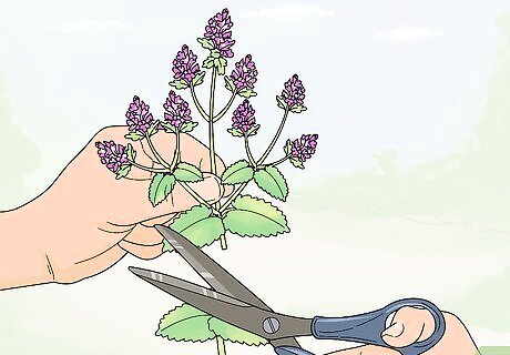 Harvest fresh catnip leaves and stems. Cut stems at the base of a catnip plant using sharp scissors or garden shears and put the trimmings into a basket or container. Collect catnip cuttings during the growing season so the plant will grow back. This method is an easy way to make catnip-infused olive oil at home if you are growing your own catnip or if there are wild catnip plants nearby. Keep in mind that this is not the same as making catnip essential oil, which requires specialized distilling equipment and is more complicated.