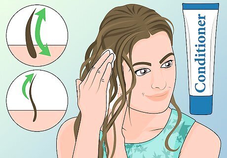 Use cool water. Don’t worry – you don’t have to stand in an ice cold water. In fact, warm water will open the cuticle of your hair and help your conditioner soak into the shaft. However, before you step out of the shower, give your hair a quick rinse with cold water. The cooler water seals the cuticle of the hair, locking in that moisture you just gave it with your conditioner.