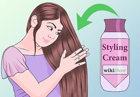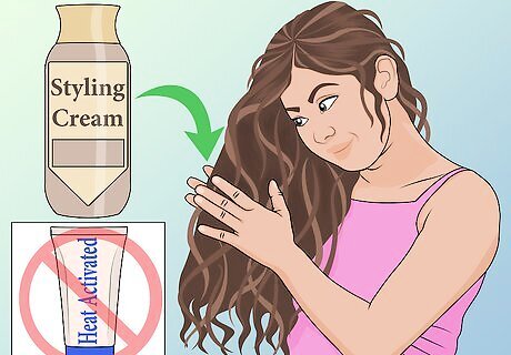 Apply a product. To get super sleek, shiny hair, you have to be willing to use a bit of product. The key is to look for light products, to keep your hair from looking oily or stringy. Mists and anything with “light” in the product name are a good bet. Make sure to avoid products that are heat activated, because they will be useless without blow-drying. Light oils, styling creams, and hydrating mists can all help your hair dry shiny and smooth. When it comes to finding the perfect product, it may be a bit of trial and error. Look for products made specifically for your hair type (fine, coarse, thick, thin, dry, and so on).